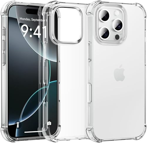 Generic - جراب حماية خلفي شفاف لموبايل ابل ايفون 16 برو ماكس مضاد للخدش من البولي يوريثين المقاوم للحرارة مع للزوايا الصدمات