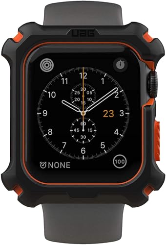 Urban Armor Gear - غطاء ساعة بشاشة حماية يو ايه جي مضادة للخدوش تتوافق مع ساعة ابل سلسلة 5/4 باللونين الاسود والبرتقالي، 42/ 44 ملم، خامات متعددة