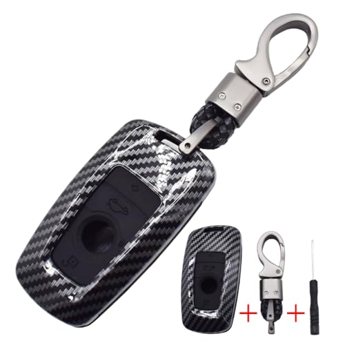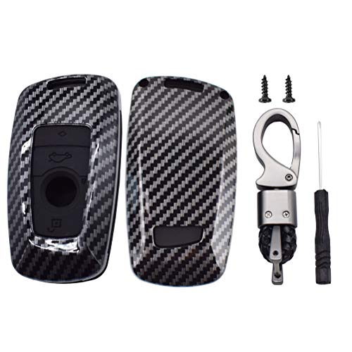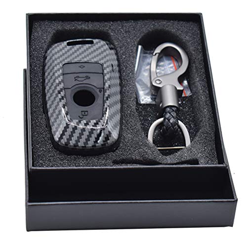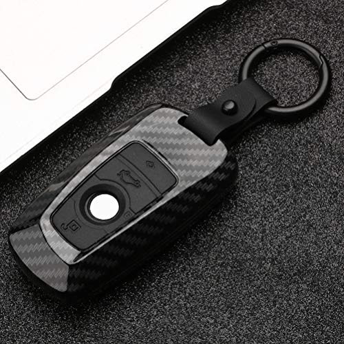 DON'T TOUCH MY KEY - جراب حماية ذكي من الألياف الكربونية لجهاز الريموت كنترول للسيارة مزين بعبارة DON'T TOUCH MY KEY بتصميم 4 أزرار مع سلسلة، غطاء حماية حلقي لمفتاح السيارة