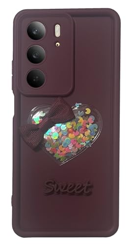Generic - جراب حماية خلفي سيليكون بتصميم ناعم ممتص للصدمات من البولي يوريثين الحراري مع واقي كاميرا وقلب جليتر لامع لموبايل أوبو ريلمي C75 (نبيذي)