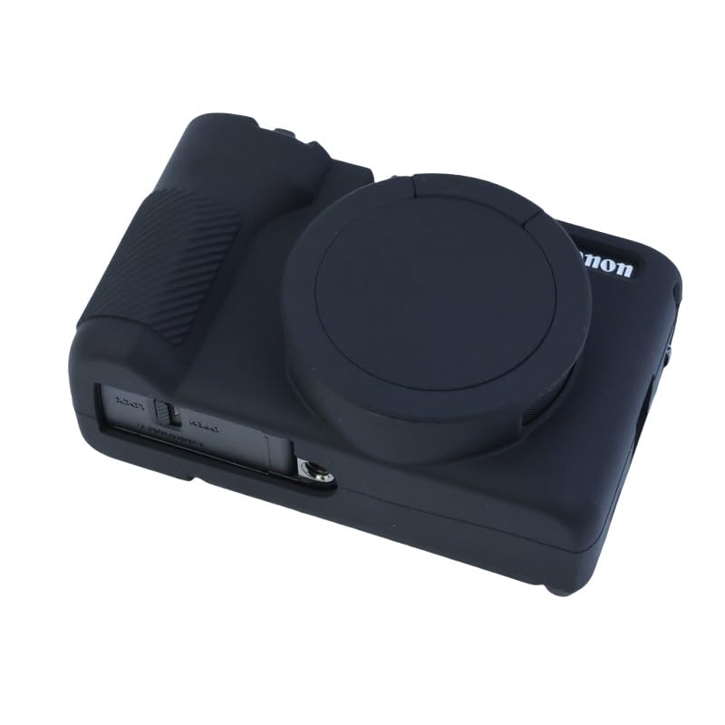 fashion mania - جراب كاميرا كانون باور شوت V1 من السيليكون الناعم فائق النحافة وخفيف الوزن ومضاد للصدمات بلون اسود