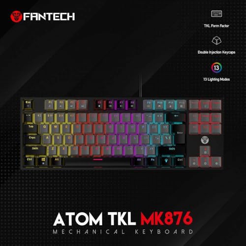 Generic - لوحة ألعاب ميكانيكية اتوم بإضاءة ار جي بي من فانتيك 86 مفتاح أغطية مفاتيح حقن مزدوجة 16 تأثير إضاءة 25 بخاصية الاستجابة لضربات متعددة لغة إنجليزية رمادي أحمر TKL MK876 USB