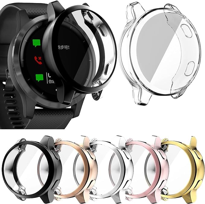 ELMO3EZZ - جراب حماية شفاف من البولي يوريثين الحراري لساعة جارمين فيفو اكتيف 4 اس / اكتيف اس، ناعم ومتين (أسود)