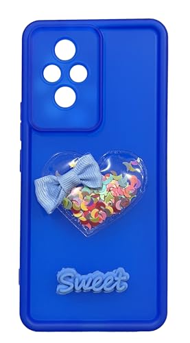 Generic - جراب خلفي اكسبريس من السيليكون الناعم ممتص للصدمات مصنوع من البولي يوريثين الحراري لحماية الكاميرا مع جليتر على شكل قلب لموبايل هواوي هونر 200، جراب مضاد للصدمات (ازرق شفاف)