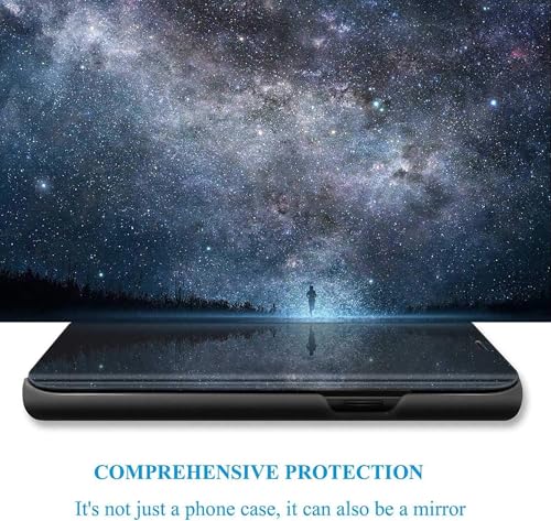 Generic - جراب حماية شفاف قابل للطي لموبايل هواوي نوفا 8 مقاس 6.57 بوصة دون مستشعر غطاء كامل قائم بتصميم مراية عاكسة أسود بلاستيك جلد
