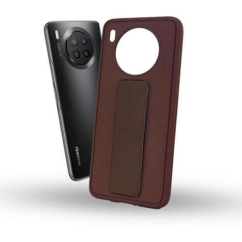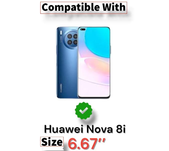 Generic - جراب حماية خلفي سيليكون بسوار معصم ومقبض جلد بوضع أفقي ورأسي وحامل مغناطيسي لموبايل هواوي نوفا 8i 6.67 بوصة لون أحمر نبيذي