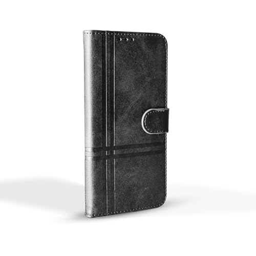 Generic - حافظة جلدية قابلة للطي بفتحة للبطاقات بتصميم خطين لهاتف انفينيكس نوت 11، حزام اغلاق مغناطيسي، تتضمن حافظة داخلية من السيليكون والبولي يوريثين الحراري، متوافقة مع انفينيكس نوت 11 (6.7 انش) (اسود)