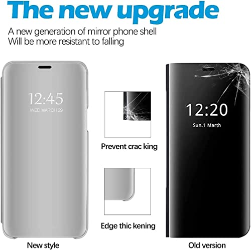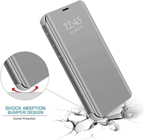 Generic - لـ هاتف ايفون 13 برو جراب من بولي كربونات حماية سمارت فيو شفاف قابل للطي محـمولجي يوفر تغطية كاملة بزاوية 360 درجة بطلاء عاكس ملائم لوضع المكياج بحامل غير ذكي - فضي