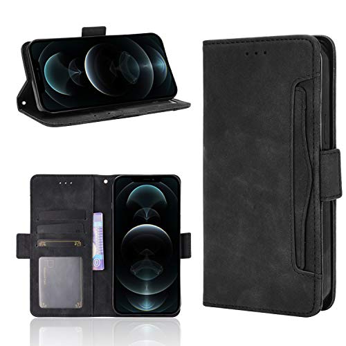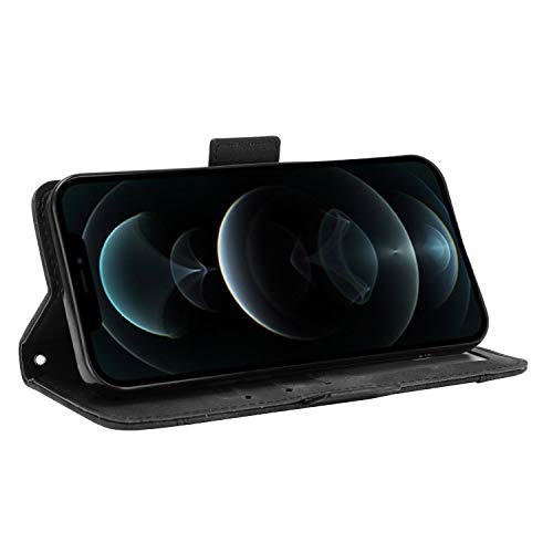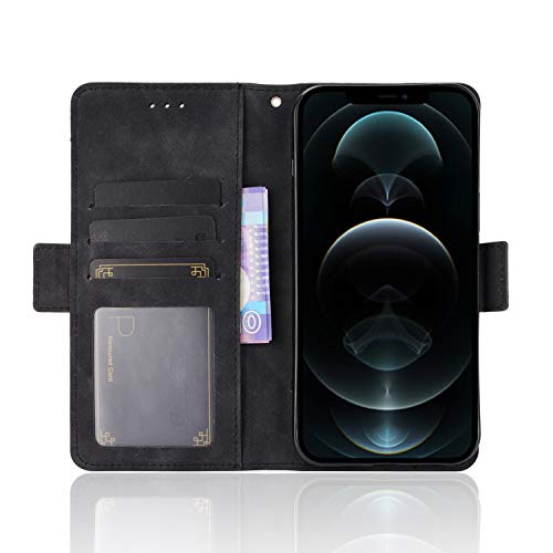 Generic - جراب حماية من الجلد قلاب بنمط افقي، بحامل وفتحات للبطاقات، ملمس جلد العجل، لموبايل ايفون 13 برو ماكس، لون (اسود)