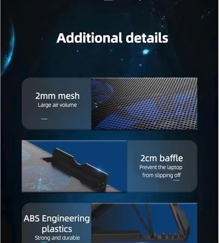 - 【6 مراوح تبريد فائقة الهدوء】تحتوي وسادة تبريد اللاب توب على 6 مراوح هادئة مع مؤشر LED أزرق. يمنع تأثير التبريد السريع الهادئ للغاية اللاب توب الخاص بك من ارتفاع درجة الحرارة في التطبيقات المختلفة.