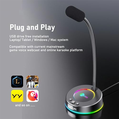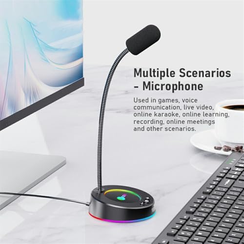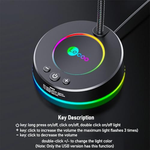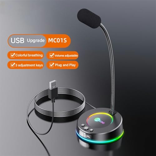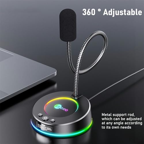 Generic - ميكروفون USB لسطح المكتب MC01S من ليكو - تاثير ضوء ملون RGB - ميكروفون معدني مرن 360 درجة - كابل 1.5 متر توصيل وتشغيل للوسائط المتعددة/الالعاب/البث/اليوتيوب/الكمبيوتر واللابتوب | اسود