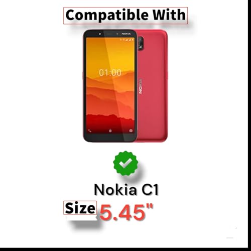 Generic - حافظة جلدية قابلة للطي بفتحة للبطاقات مع مسند وحزام اغلاق مغناطيسي، تتضمن داخلية من السيليكون والبولي يوريثين الحراري، متوافقة نوكيا C1 (5.45 انش) (اسود)