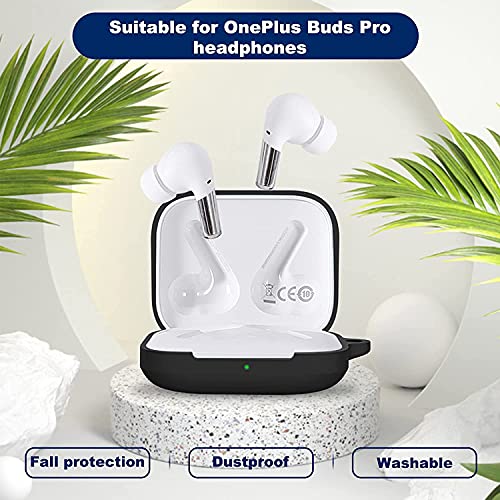 Generic - جراب سيليكون مرن وممتص للصدمات لحماية كاملة لسماعات ون بلس بادز برو مع حلقة للتعليق اسود رأس