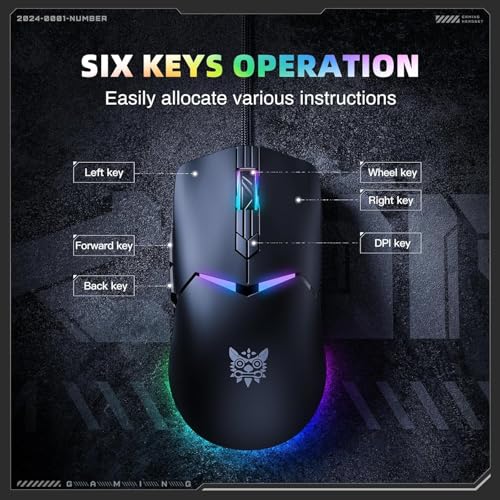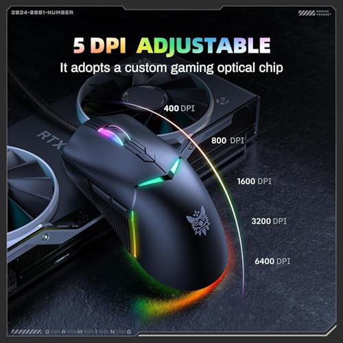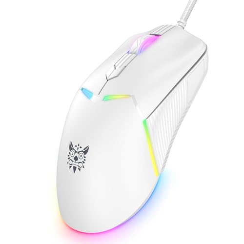 Generic - ماوس الألعاب السلكي CW929 - 6 أزرار - مستشعر بصري A825 بدقة قابلة للضبط حتى 6400 نقطة لكل بوصة - إضاءة ار جي بي خلفية 7 ألوان - للكمبيوتر المكتبي ولاب توب من اونيكوما | لون أبيض