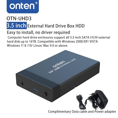 Generic - جراب هارد HDD 3.5 بوصة تدعم 10 تيرابايت USB 3.0 مع محول طاقة وكابل بيانات من اونتين