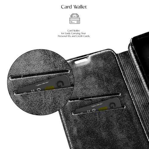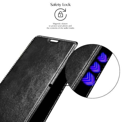 Generic - حافظة جلدية قابلة للطي مع مسند لفتحة البطاقات، ميزة الاغلاق المغناطيسي، تتضمن حافظة داخلية من السيليكون والبولي يوريثين الحراري، حماية عالية متوافقة مع اوبو A5 برو (6.66 انش) (اسود)
