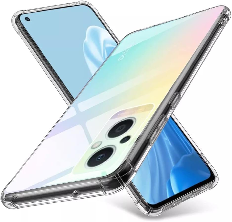 - جراب حماية خلفي مرن ناعم الملمس مصنوع من سيليكون وبولي يوريثين حراري ومزود بمصدات زاوية لموبايل اوبو رينو 7 Z واوبو رينو A96 5G وون بلس نورد N20 5G - شفاف