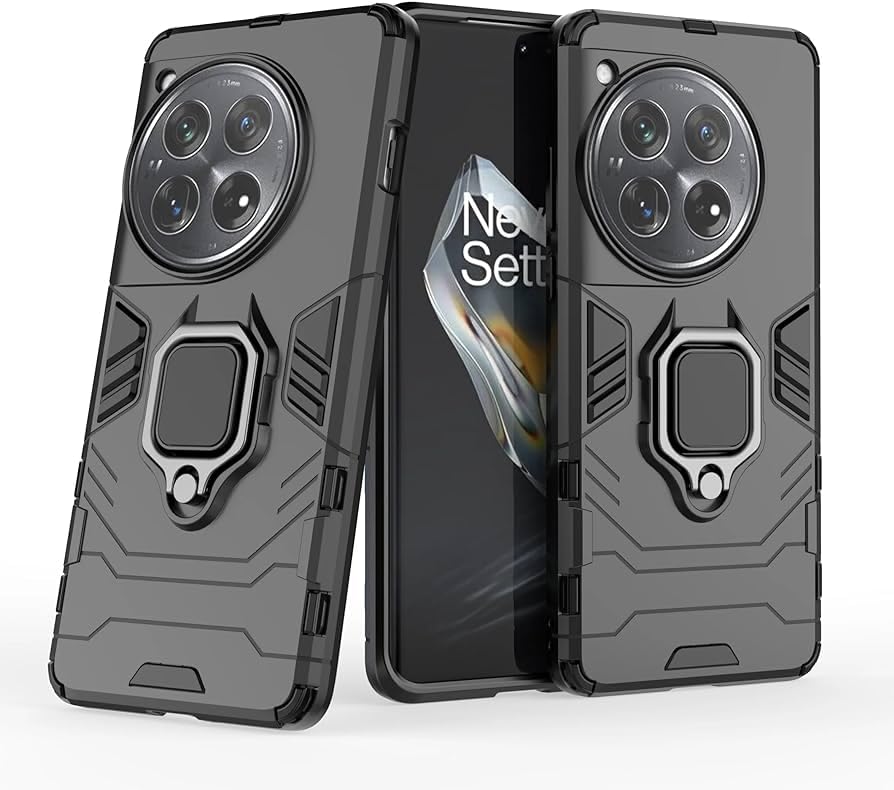 - جراب لموبايل ون بلس 12 شبكة الجيل الخامس 5G، غطاء حماية شديد التحمل بطبقة مزدوجة مضادة للصدمات مع مسند حلقي مغناطيسي (لون أسود)