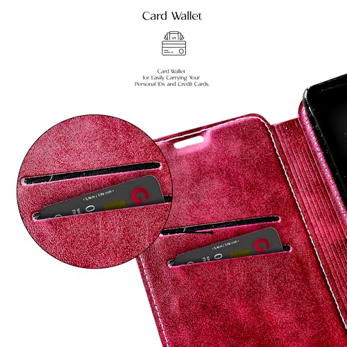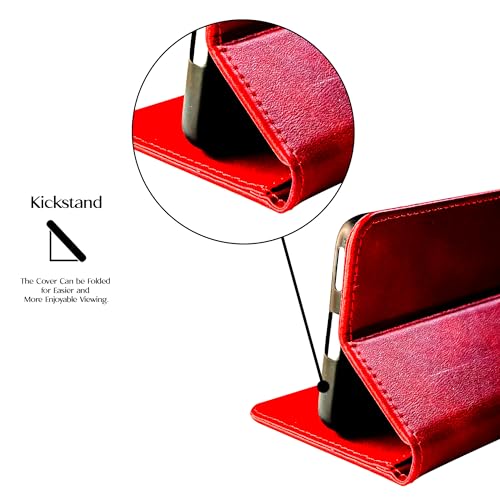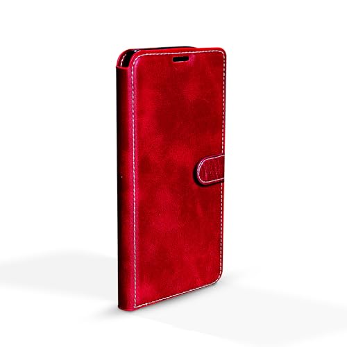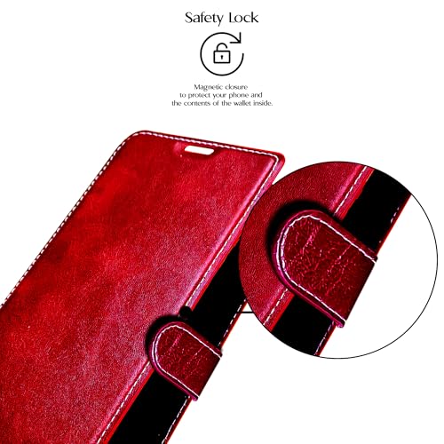 Generic - حافظة جلدية قابلة للطي مع مسند لفتحة بطاقات ريلمي 15 برو، حزام اغلاق مغناطيسي، يتضمن حافظة داخلية من السيليكون والبولي يوريثين الحراري، حماية عالية متوافقة مع ريلمي 15 برو (6.8 انش) (احمر)