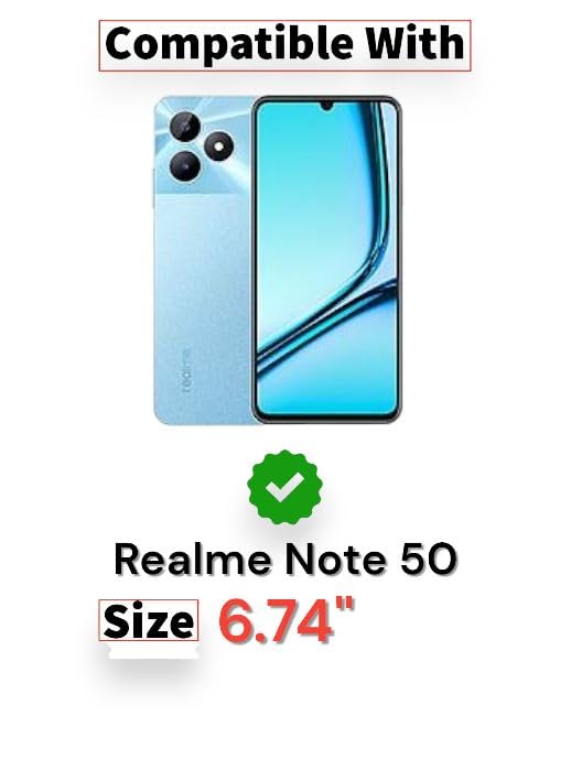 Generic - جراب حماية مزين بخطين من الجلد قابل للطي بفتحة للبطاقات مع مسند لموبايل ريلمي نوت 50 (6.74 بوصة)، جراب بحزام إغلاق مغناطيسي مع بطانة داخلية السيليكون والبولي يوريثين الحراري (أسود)