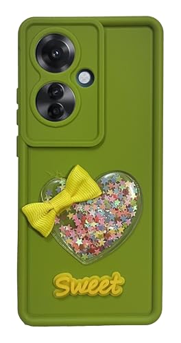 Generic - جراب خلفي من السيليكون الناعم ممتص للصدمات البولي يوريثين الحراري لحماية الكاميرا مع جليتر على شكل قلب لموبايل اوبو رينو 11F اخضر
