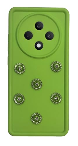 Generic - جراب خلفي من السيليكون الناعم ممتص للصدمات البولي يوريثين الحراري لحماية الكاميرا مع ملحقات ماسية لموبايل اوبو رينو 12F اخضر
