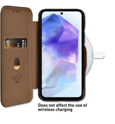 - محفظة جلدية بالكامل بفتحة للبطاقات مع مسند مع حزام إغلاق مغناطيسي