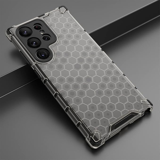 Generic - جراب حماية من السقوط بتصميم خلية النحل من الدرجة العسكرية لموبايل سامسونج جالاكسي S25 الترا 5G، جراب حماية رفيع للغاية من البولي يوريثين الحراري + بولي كربونات سيليكون شفاف، غطاء مضاد للصدمات (رمادي)