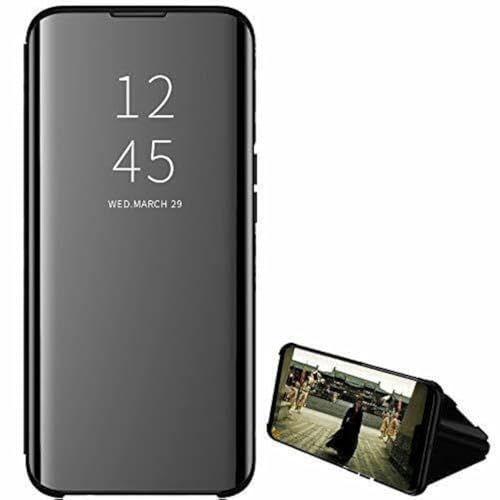 Generic - جراب حماية شفاف قابل للطي بدون مستشعر بتصميم قائم عاكس بالكامل لموبايل سامسونج جالاكسي A10 6.2 بوصة، أسود، بلاستيك جلد