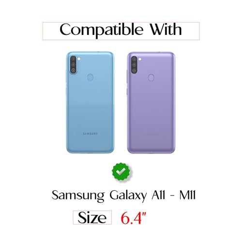 Generic - جراب حماية جلد قابلة للطي بفتحة للبطاقات مع مسند وحزام إغلاق مغناطيسي وبطانة داخلية من السيليكون والبولي يوريثين المقاوم للحرارة لموبايل سامسونج جالاكسي A11/M11 (6.4 بوصة) (لون أزرق)