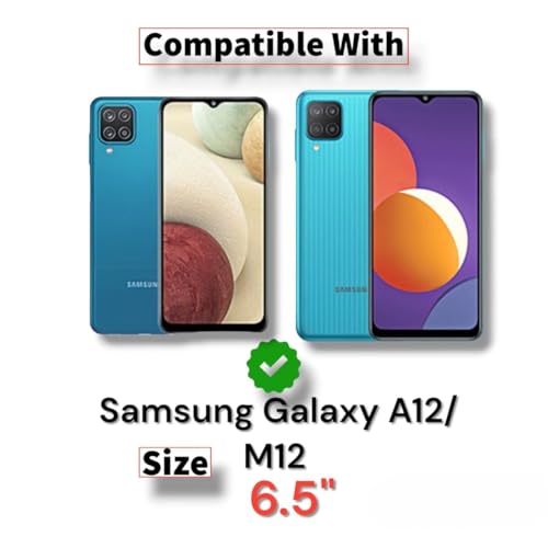Generic - جراب حماية جلد قابل للطي بتصميم بخطين مع محفظة كروت ومسند وحزام إغلاق مغناطيسي وحافظة داخلية من السيليكون والبولي يوريثين المقاوم للحرارة لموبايل سامسونج جالاكسي A12-M12 (6.5 بوصة) (لون أزرق)