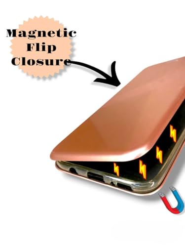 Generic - جراب حماية قلاب مغناطيسي من السيراميك البلاستيكي اللامع لموبايل سامسونج جالاكسي A20 - A30 فلتر سماعات الرأس وفتحة بطاقة متوافق مع A20 - A30 195 سم روز بلاستيك سيليكون ذهبي وردي
