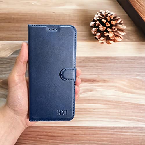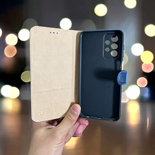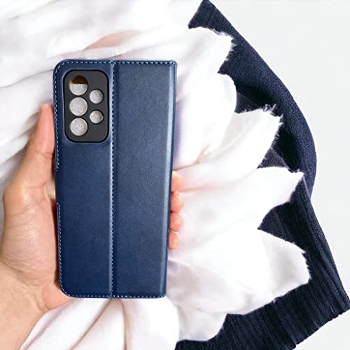 - لهاتف سامسونج جلاكسي A23 حافظه قابله للطي جلد فليب مذود بكبسوله مغناطيسية لاحكام الغلق لون ازرق