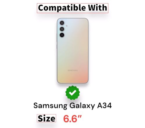 Generic - جراب قابل للطي بتقنية كلير فيو وحماية كاملة بدون تغطية المستشعر لموبايل سامسونج جالاكسي A34 بشبكة الجيل الخامس 5G - روز، بلاستيك، وردي