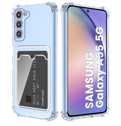 Generic - حافظة لهاتف سامسونج جالاكسي A55 حماية للكاميرا من السيليكون الشفاف الناعم مادة TPU مع حامل للبطاقات وعدسة مضادة للخدش