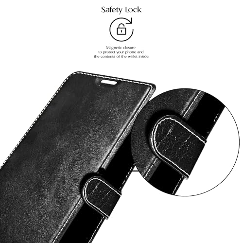 - محفظة جلدية بالكامل بفتحة للبطاقات مع مسند، مع قفل مغناطيسي