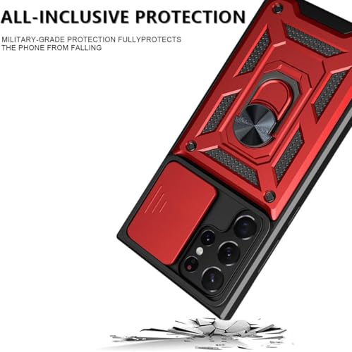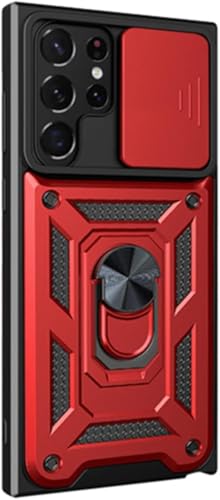 Generic - جراب حماية خلفي متين شديد التحمل لموبايل سامسونج جالاكسي S22 الترا بمسند وواقي كاميرا منزلق متوافق مع موبايل S22 مقاس 6.8 بوصة لون أحمر بلاستيك