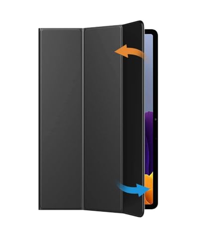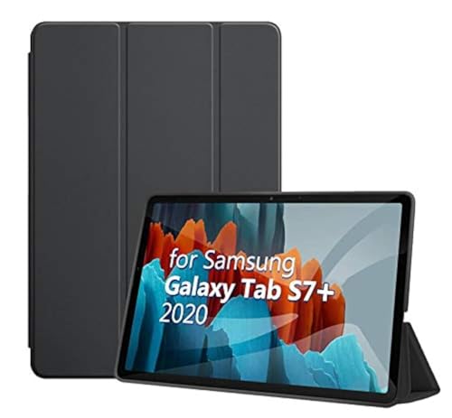 Generic - حافظة حماية بغطاء من الجلد الناعم وخلفية من البولي يوريثين الحراري وثلاثي الطي مع خاصية النوم التلقائي لسامسونج جالاكسي تاب اس 7 بلس 12.4 اس ام - تي 970/ اس ام- تي 975 - لون اسود، لأجهزة لوحية