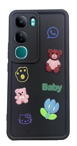 Generic - جراب خلفي مضاد للصدمات مصنوع من السيليكون الناعم والبولي يوريثين الحراري مع حماية للكاميرا والألعاب العشوائية المتنوعة لموبايل فيفو V40 لايت (أسود)
