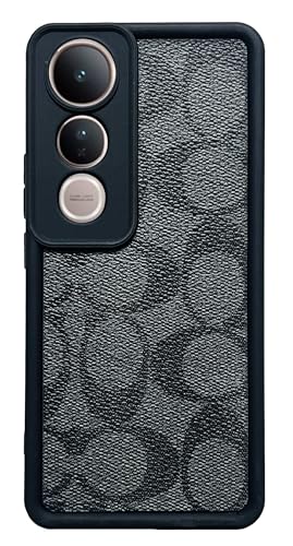 Generic - جراب حماية لموبايل فيفو V50 لايت، جراب خلفي اكسبريس مقاوم للصدمات ومصنوع من السيليكون الناعم، تصميم بملصق جلدي وإطار من البولي يوريثين المقاوم للحرارة مع حماية للكاميرا، أسود