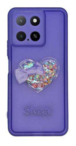 Generic - جراب حماية خلفي مضاد للصدمات من السيليكون المرن والبولي يوريثين المقاوم للحرارة مع واقي للكاميرا مزين بقلب داخله جليتر لموبايل هواوي هونر X5B / X5B بلس (أرجواني شفاف)