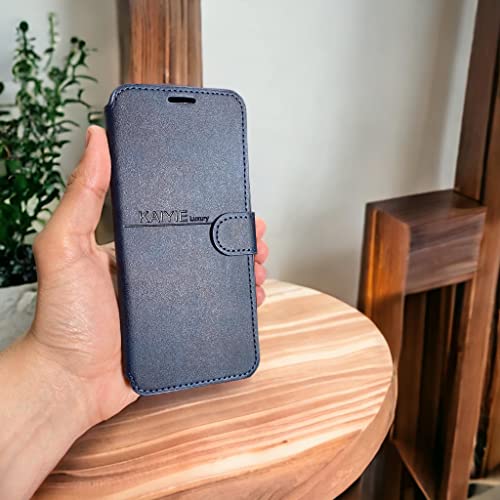 - لهاتف شاومي ريدمي نوت 8 حافظه قابله للطي جلد فليب مذود بكبسوله مغناطيسية لاحكام الغلق لون ازرق غامق