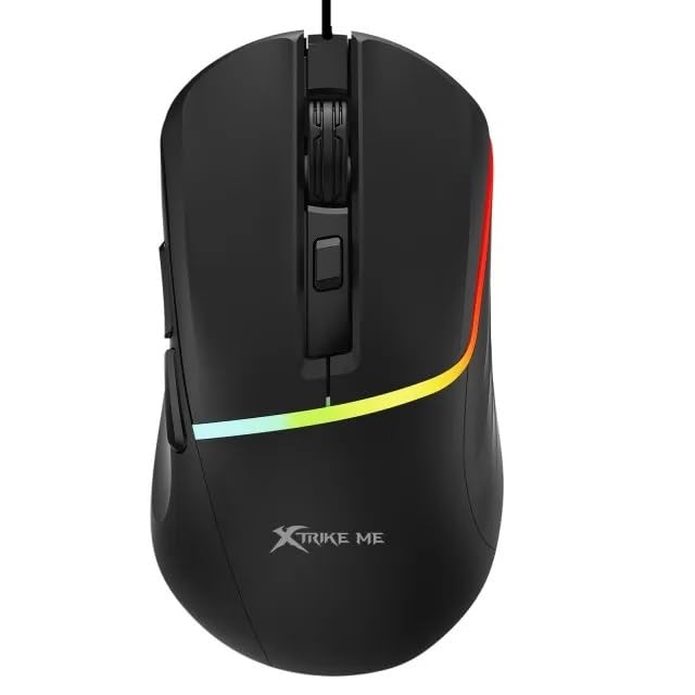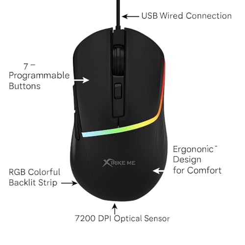 Generic - ماوس العاب سلكي USB للالعاب Xtrike Me GM-322 - ماوس ضوئي 7200 نقطة لكل بوصة / 7 ازرار / 1000 هرتز - ماوس العاب ضوئي باضاءة خلفية RGB ملونة للكمبيوتر واللاب توب (اسود)