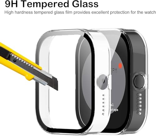 - 【تصميم الكل في واحد】يحتوي هذا الجراب المصنوع من مادة البولي كربونات على واقي شاشة من الزجاج المقوى عالي الدقة، يغطي الحواف الأمامية والمنحنية بالكامل للساعة. يحمي جهازك من السقوط والصدمات والغبار والخدوش العرضية من الحواف الأعلى لحماية الشاشة.