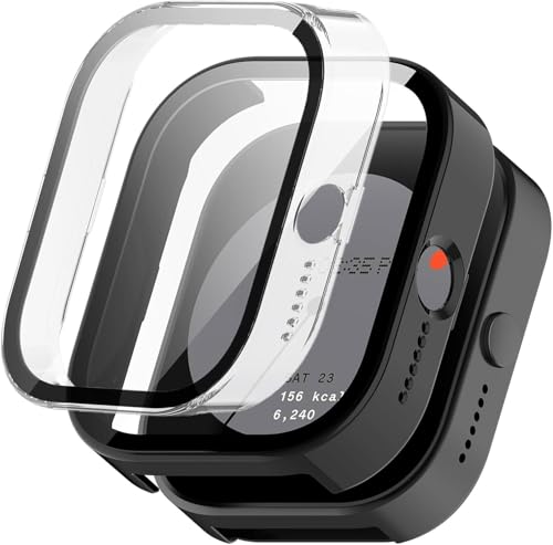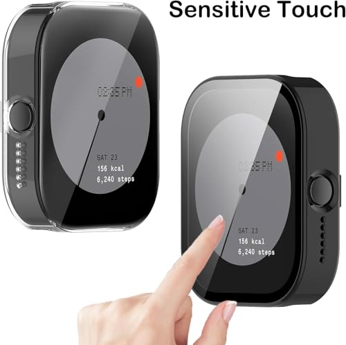 Generic - جراب من الزجاج المقوى لساعة سي ام اف من نوثينج ووتش برو، عبوة من قطعتين من غطاء ممتص للصدمات صلب مقاوم للماء من البولي كربونات فائق النحافة ومضاد للخدش، اسود + شفاف من فور3ون