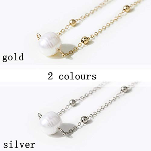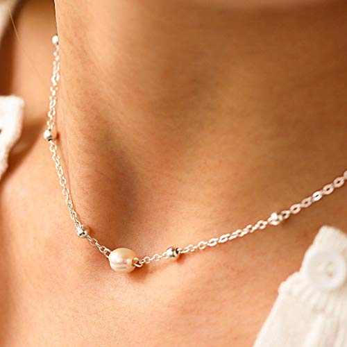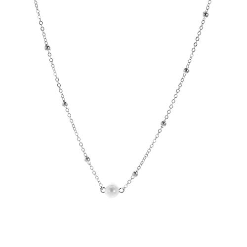 Forall - عقد لؤلؤ قصير فضي صغير مطرز بخرز قصير للشاطئ، سلسلة مجوهرات للنساء والفتيات