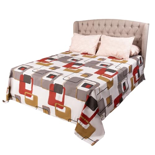 Forbed - طقم ملاءة مسطحة وكيس مخدة من مزيج القطن والبوليستر 4156 من فوربد، متعدد الألوان، مقاس مزدوج، طقم من 4 قطع