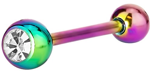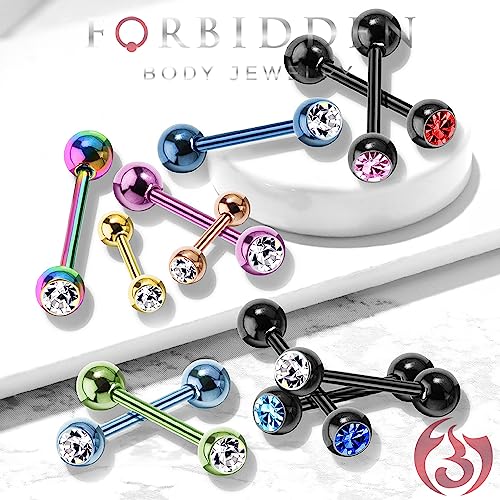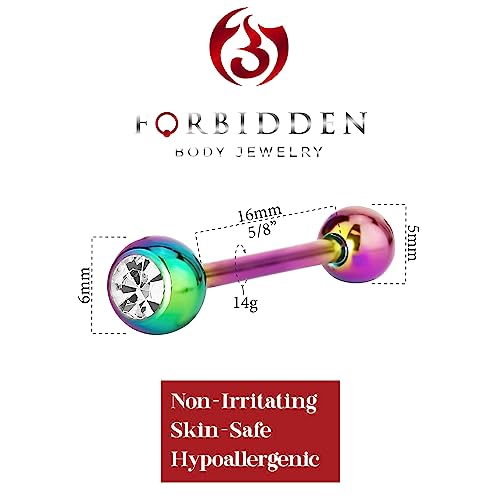 Forbidden Body Jewelry - فوربيدن بودي جولاري خاتم لسان 14 غرام 16 ملم (5/8 انش) من الستيل الجراحي المطلي بالزركونيا المكعب، 16 ملم، معدن، زركونيا مكعب،