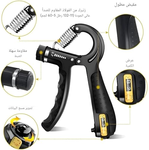 - مصممة بمقبض سيليكون ناعم ومريح يناسب الأيدي الكبيرة والصغيرة، بما في ذلك كبار السن والمراهقين، مما يضمن السلامة والراحة المثلى أثناء تمارين تقوية القبضة.