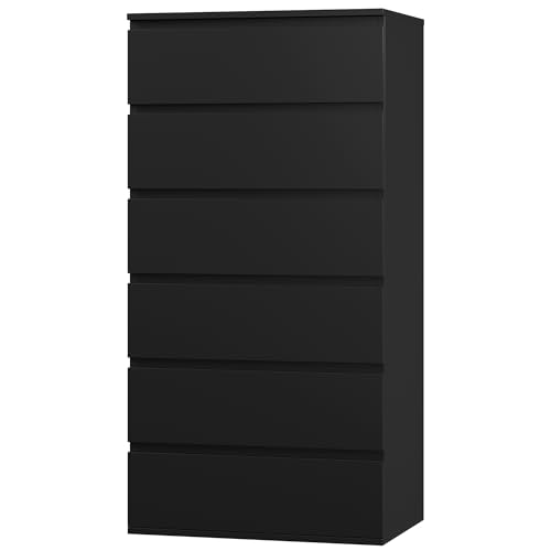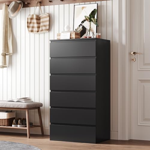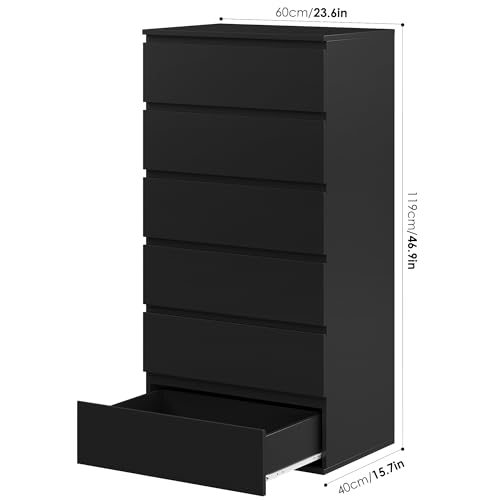 FOREHILL - خزانة أدراج من فورهيل بـ6 أدراج، خزانة جانبية بأدراج عالية لغرفة النوم والممر وغرفة المعيشة، 60 × 40 × 119 سم، أسود